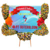 Papan Bunga Untuk Ucapan Selamat Desain Terbaik dengan Rangkaian Bunga Fresh dan Bunga Suyok Terbuat dari Styrofoam dan Busa Hadir dengan Rangka Penyangga yang Kuat Ukuran 230 cm x 125 cm Bisa Custom Untuk Penulisan Nama dan Ucapan