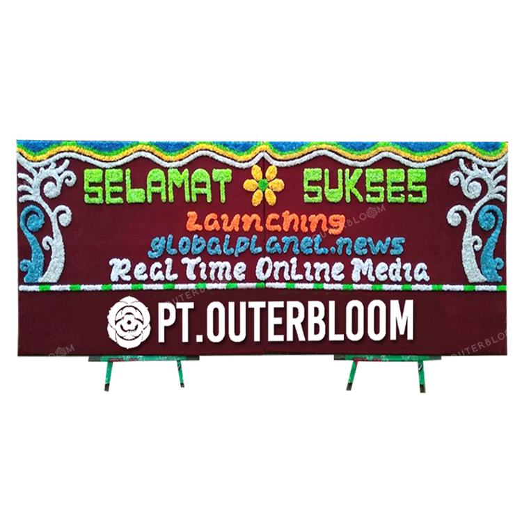 Papan Bunga untuk Ucapan Selamat Desain Terbaik dengan Rangkaian Bunga Fresh dan Suyok Berkualitas Terbuat dari Styrofoam dan Busa Pilihan Hadir dengan Rangka Penyangga yang Kuat Ukuran 200 cm x 600 cm Bisa Custom untuk Penulisan Nama dan Ucapan Untuk Disewakan selama 1-2 Hari