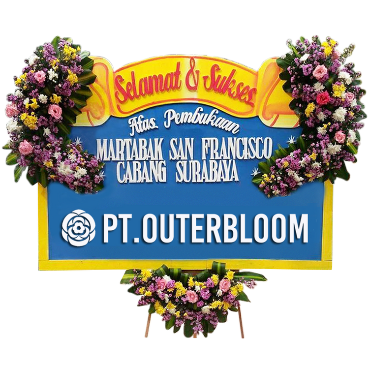 Papan Bunga untuk Ucapan Selamat Desain Terbaik dengan Rangkaian Bunga Suyok Terbuat dari Styrofoam dan Busa Hadir dengan Rangka Penyangga yang Kuat Ukuran 225 cm x 140 cm Bisa Custom untuk Penulisan Nama dan Ucapan