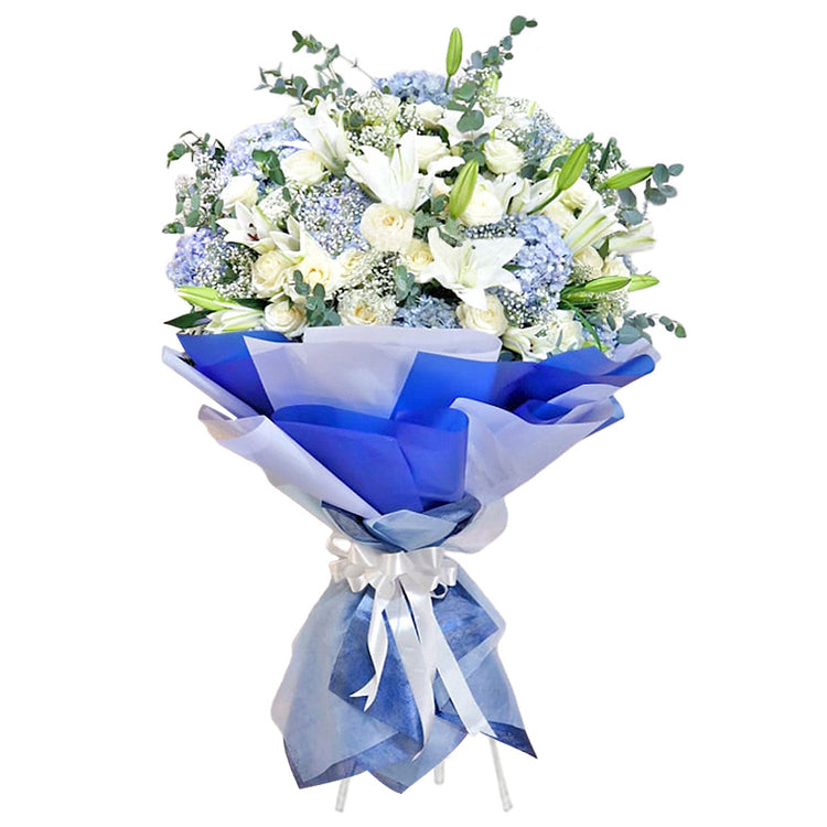Rangkaian Mawar Putih, Baby Breath, Lily dan Hydrangea
