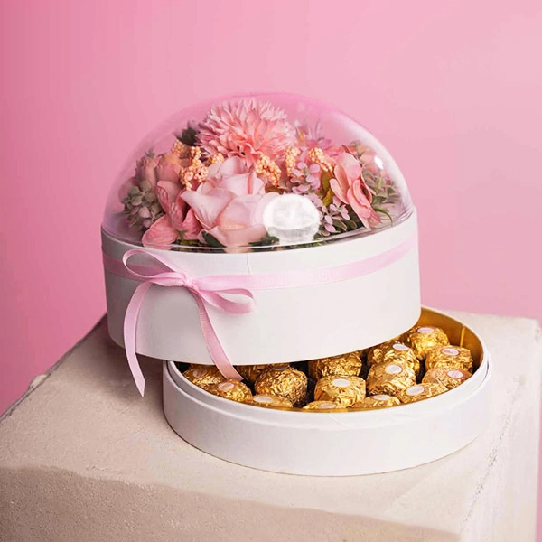 • Flower box/ Bloombox dengan kombinasi bunga artificial dan ferrero rocher 22pc yang cantik dan elegan