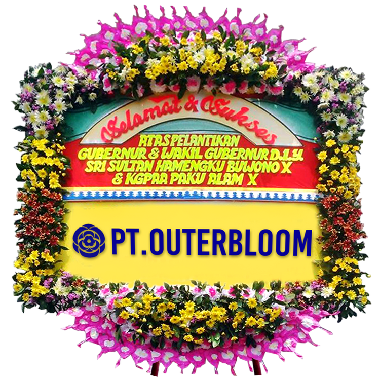 Papan Bunga untuk Ucapan Selamat Desain Terbaik dengan Rangkaian Bunga Fresh Berwarna Cerah Dilengkapi dengan Bunga Suyok Artificial Berkualitas Terbuat dari Styrofoam dan Busa Pilihan Hadir dengan Rangka Penyangga yang Kuat Ukuran 200 cm x 200 cm Bisa Custom untuk Penulisan Nama dan Ucapan