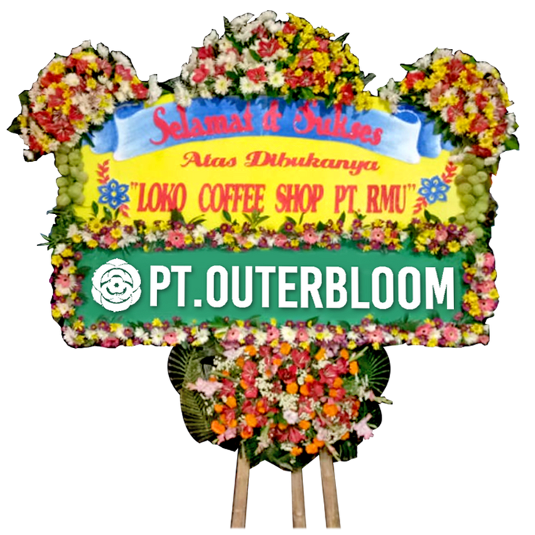 Papan Bunga untuk Ucapan Selamat Desain Terbaik dengan Rangkaian Bunga Fresh Berwarna Cerah Dilengkapi dengan Bunga Suyok Artificial Berkualitas Terbuat dari Styrofoam dan Busa Pilihan Hadir dengan Rangka Penyangga yang Kuat Ukuran 200 cm x 200 cm Bisa Custom untuk Penulisan Nama dan Ucapan