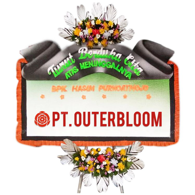 Papan Bunga untuk Ucapan Duka Cita Desain Elegan Terbaik dengan Rangkaian Bunga Fresh Terbuat dari Styrofoam dan Rangka Penyangga yang Kuat Ukuran 200 cm x 150 cm Bisa Custom Untuk Penulisan Nama dan Ucapan