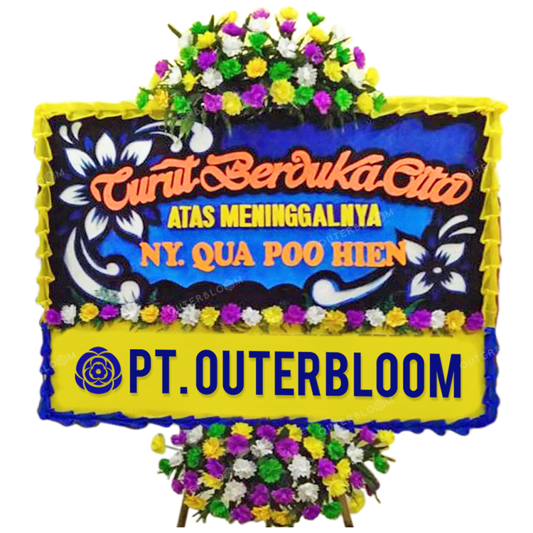 Papan Bunga Untuk Ucapan Duka Cita Desain Terbaik dengan Rangkaian Bunga Fresh, Bunga Suyok, dan Styrofoam Hadir dengan Rangka Penyangga yang Kuat Ukuran 200 cm x 150 cm Bisa Custom untuk Penulisan Nama dan Ucapan