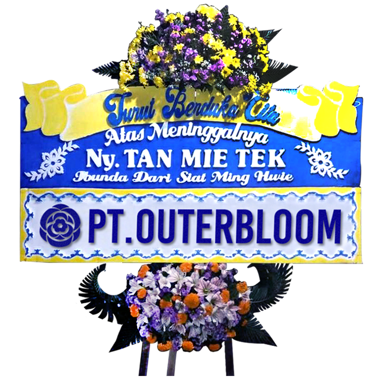 Papan Bunga Untuk Ucapan Duka Cita Desain Terbaik dengan Rangkaian Bunga Suyok Terbuat dari Styrofoam dan Rangka Penyangga yang Kuat Ukuran 200 cm x 125 cm Bisa Custom Untuk Penulisan Nama dan Ucapan