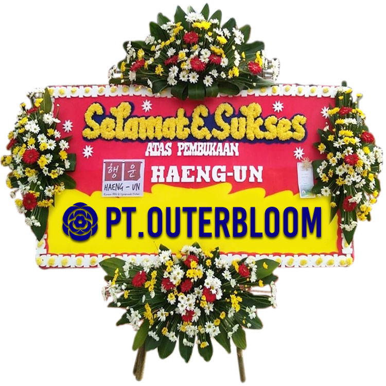 Papan Bunga Untuk Ucapan Selamat Ukuran 200 cm x 100 cm Desain Terbaik dengan Rangkaian Bunga Fresh dan Bunga Suyok Terbuat dari Styrofoam dan Rangka Penyangga yang Kuat Bisa Custom Untuk Penulisan Nama dan Ucapan