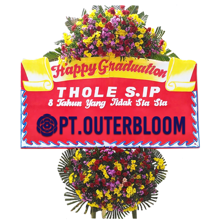Papan Bunga Untuk Ucapan Selamat Desain Terbaik dengan Rangkaian Bunga Fresh dan Suyok Terbuat dari Styrofoam dan Busa Hadir dengan Rangka Penyangga yang Kuat Ukuran 200 cm x 100 cm Bisa Custom Untuk Penulisan Nama dan Ucapan