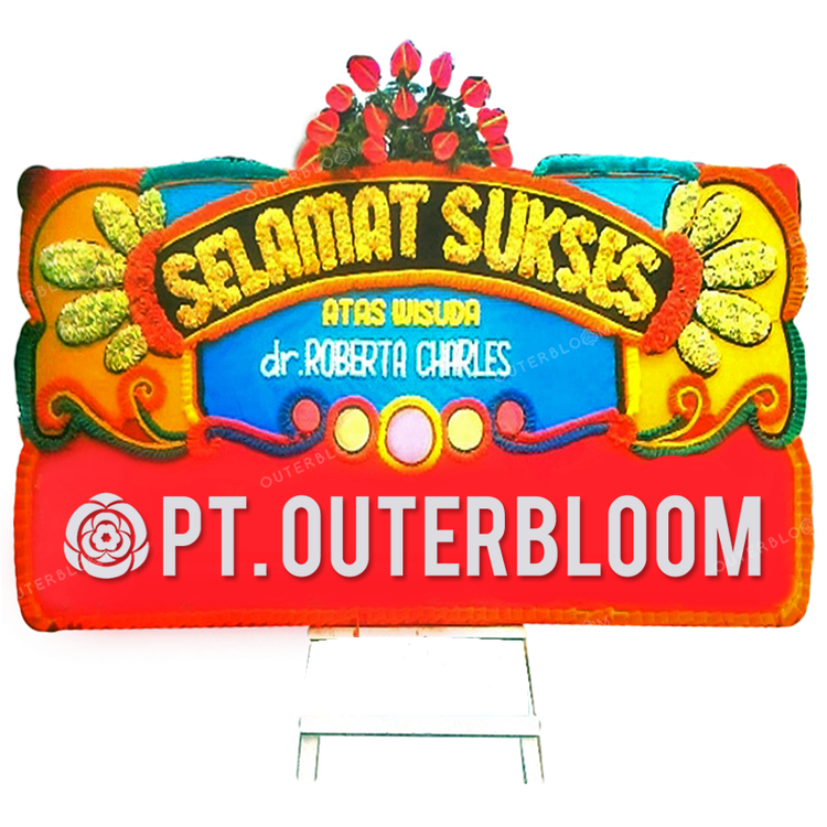 Papan Bunga Untuk Ucapan Selamat Ukuran 200 cm x 150 cm Desain Terbaik dengan Rangkaian Bunga Fresh dan Suyok Terbuat dari Styrofoam dan Rangka Penyangga yang Kuat Bisa Custom Untuk Penulisan Nama dan Ucapan Untuk Disewakan Selama 1-2 Hari