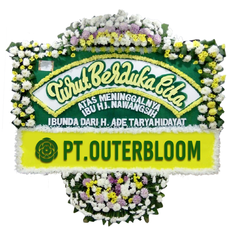 Papan Bunga Untuk Ucapan Duka Cita Desain Terbaik dengan Rangkaian Bunga Fresh, Bunga Suyok dan Styrofoam Hadir dengan Rangka Penyangga yang Kuat Ukuran 200 cm x 125 cm Bisa Custom Untuk Penulisan Nama dan Ucapan