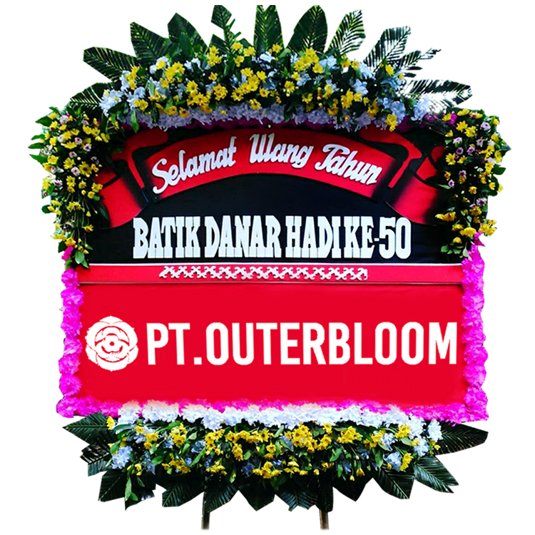 Papan Bunga untuk Ucapan Selamat Desain Terbaik dengan Rangkaian Bunga Suyok Terbuat dari Styrofoam dan Busa Hadir dengan Rangka Penyangga yang Kuat Ukuran 150 cm x 200 cm Bisa Custom untuk Penulisan Nama dan Ucapan