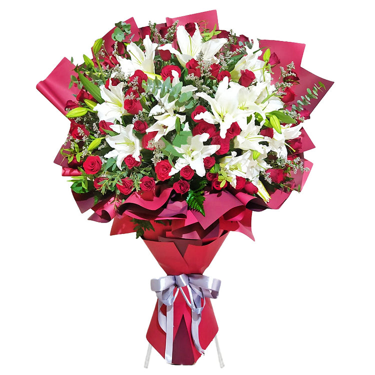 Rangkaian Mawar Merah, Lily, dan Caspea