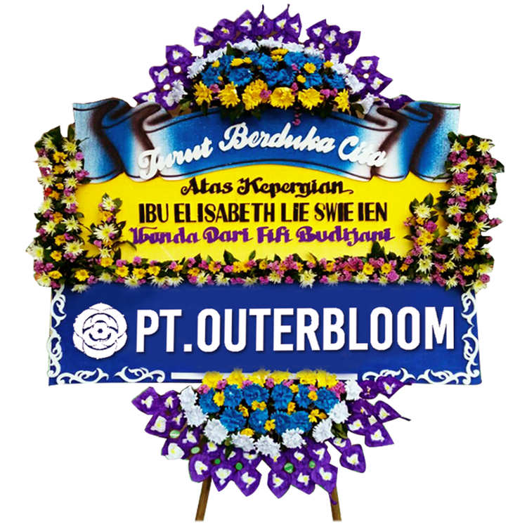Papan Bunga untuk Ucapan Duka Cita Desain Terbaik dengan Rangkaian Bunga Fresh dan Bunga Suyok Berkualitas Terbuat dari Styrofoam Pilihan Hadir dengan Rangka Penyangga yang Kuat Ukuran 125 cm x 200 cm Bisa Custom Untuk Penulisan Nama dan Ucapan