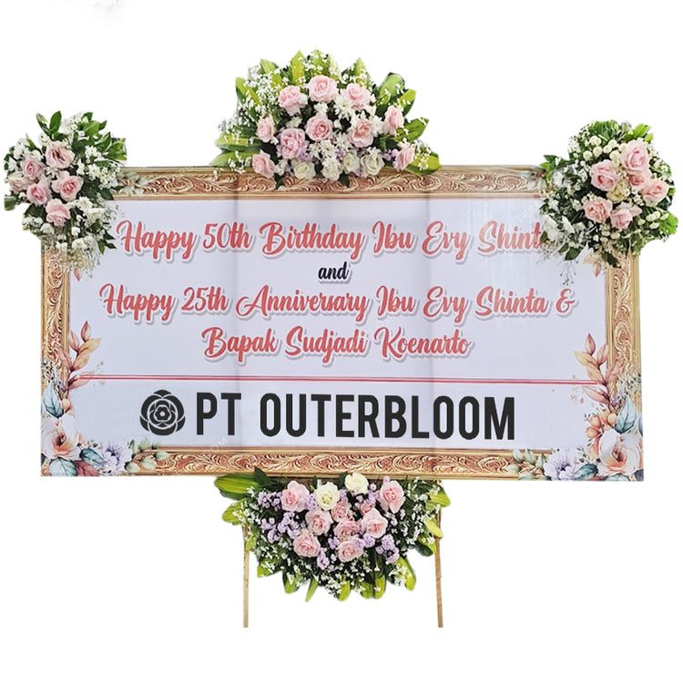 Papan Bunga untuk Ucapan Selamat Desain Terbaik dengan Rangkaian Bunga Fresh dan Suyok Terbuat dari Styrofoam dan Busa Hadir dengan Rangka Penyangga yang Kuat Ukuran 200 cm x 100 cm Bisa Custom untuk Penulisan Nama dan Ucapan