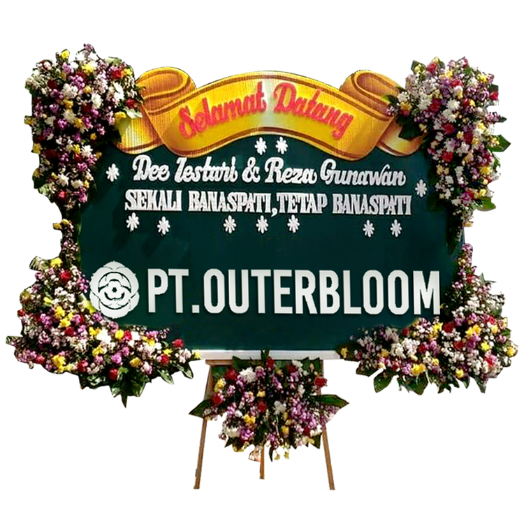 Papan Bunga Untuk Ucapan Selamat Desain Terbaik dengan Rangkaian Bunga Fresh dan Suyok Terbuat dari Styrofoam dan Busa Hadir dengan Rangka Penyangga yang Kuat Ukuran 225 cm x 140 cm Bisa Custom Untuk Penulisan Nama dan Ucapan