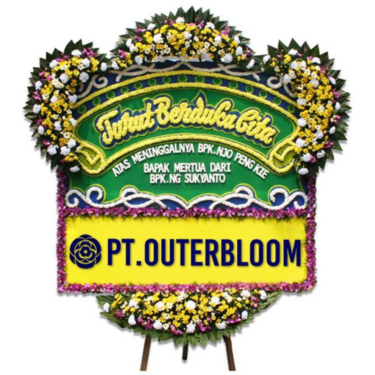Papan Bunga Untuk Ucapan Duka Cita Desain Terbaik dengan Rangkaian Bunga Fresh dan Suyok Terbuat dari Styrofoam, Busa dan Rangka Penyangga yang Kuat Ukuran 200 cm x 125 cm Bisa Custom Untuk Penulisan Nama dan Ucapan