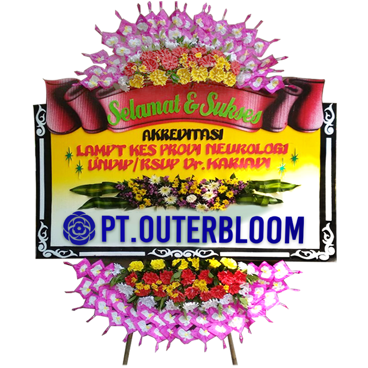 Papan Bunga untuk Ucapan Selamat Ukuran 125 cm x 200 cm Desain Terbaik dengan Rangkaian Bunga Fresh dan Bunga Suyok Terbuat dari Styrofoam Pilihan Rangka Penyangga yang Kokoh Bisa Custom untuk Penulisan Nama dan Ucapan