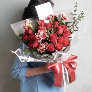 Perpaduan Sempurna yang terdiri atas 20 Tangkai Rose Merah dan Caspea