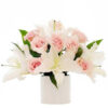 Rangkaian Mawar Putih, Baby Breath, dan Caspea